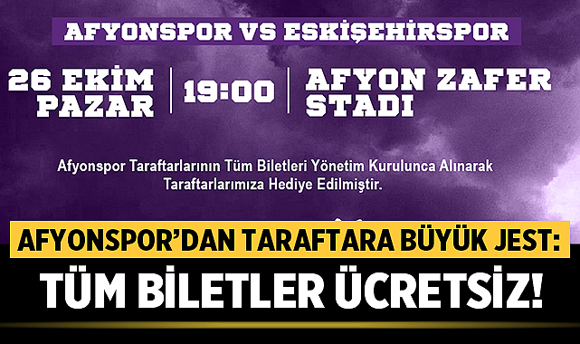Kulüp tarafından yapılan açıklamada, “Afyonspor’un en büyük gücü her zaman taraftarı olmuştur. Bu hafta stadımızı doldurarak takımımızı zafere taşıyacağımıza inanıyoruz.” ifadelerine yer verildi.